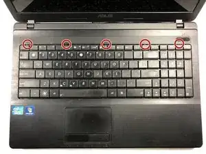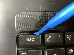 Осторожно отогните пять зажимов, удерживающих клавиатуру, с помощью пластикового инструмента для открытия.