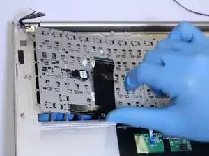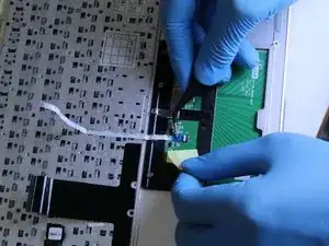 Отсоедините ZIF-разъём на нижней стороне материнской платы, соединяющий её с клавиатурой.