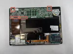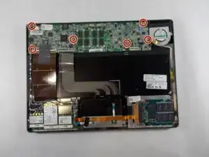 Используя отвертку Philips #0, открутите шесть винтов длиной 2 мм, которые удерживают вентилятор и материнскую плату в устройстве.
