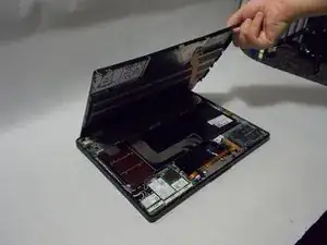 Используя отвертку Philips #0, открутите восемь винтов длиной 2 мм, которые удерживают клавиатуру в устройстве.