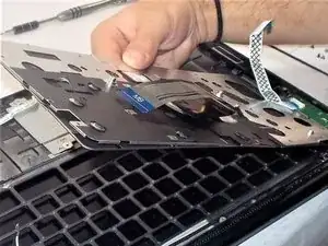 Поднимите язычок разъема, чтобы освободить кабель тачпада.