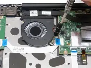 Используя отвёртку Филлипс #1, удалите два винта длиной 2 мм, фиксирующие сборку вентилятора.