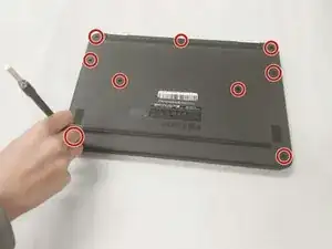 С помощью отвертки крестовой (PH1) открутите 9 (M2.5x4) винтов, крепящих крышку сзади.
