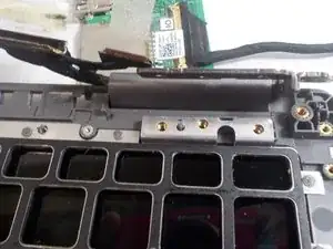 Открутите по три винта, удерживающих петли ноутбука с каждой стороны.