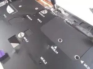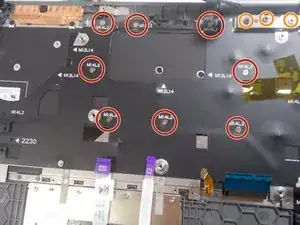 Используйте крестовую отвёртку #00, чтобы открутить восемь винтов длиной 1 мм, расположенных сзади клавиатуры.