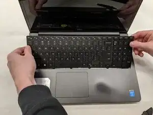Данный гид предназначен для удаления или замены клавиатуры для Dell Inspiron 15-5547. Эта процедура может потребоваться для удаления и замены нерабочей клавиатуры. Вам также может понадобиться компонент замены клавиатуры, специфичный для Dell Inspiron 15-5547, если вы собираетесь заменить дефектную клавиатуру. Будьте осторожны, чтобы не вырывать клавиатуру слишком быстро или грубо на протяжении всех этапов удаления, чтобы не повредить соединительные шлейфы клавиатуры.