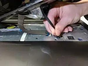 Отсоедините больший шлейф от разъёма ноутбука так же, как и первый. Это полностью отсоединит клавиатуру от ноутбука.