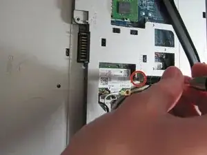 Удалите три винта Phillips #0 длиной 5 мм, которые удерживают аккумулятор подключенным к компьютеру.