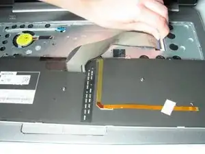 Поднимите защелки разъема и отсоедините кабели клавиатуры и подсветки.
