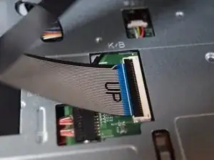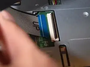Теперь поднимите клавиатуру достаточно, чтобы получить доступ к шлейфам под ней.