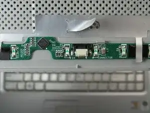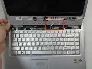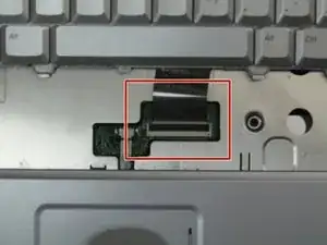 Смотрите под клавиатурой, в сторону тачпада в центре, поднимите черную вкладку на разъеме для кабеля-ленты клавиатуры с помощью пинцета.