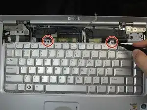 Удалите два винта типа Phillips #1 размером 3 мм в верхней части клавиатуры, где была крышка управления.