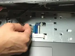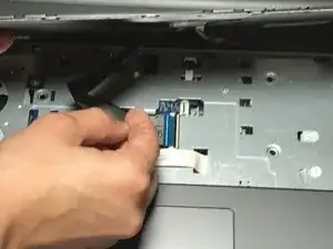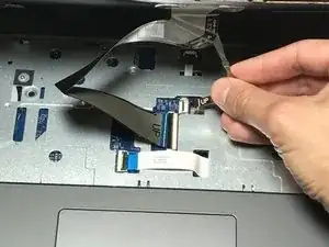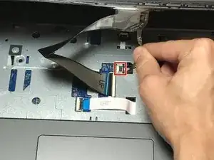 Аккуратно освободите защелку ZIF, которая удерживает кабель клавиатуры на ноутбуке.