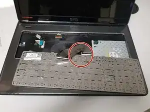 Поднимите верхнюю часть клавиатуры и положите её вверх дном. Это позволит вам получить доступ к кабелю клавиатуры, который подключен к материнской плате.