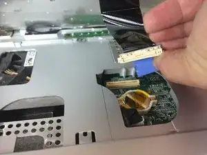 Осторожно приподнимите клавиатуру, не повредив кабель, расположенный в нижней части клавиатуры.