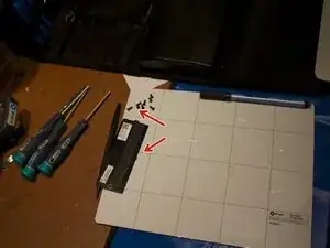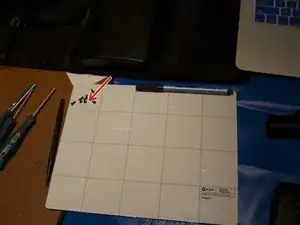 Удалите 3 винта, выделенные красным, которые фиксируют клавиатуру к корпусу, используя отвертку с самым большим крестовым наклоном из коробки.