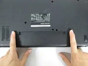 Нажмите и сдвиньте кнопки наружу, чтобы разблокировать отсек для батареи.
