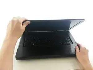 Начните поднимать панель с любого из углов, а затем продолжайте вдоль краёв компьютера.