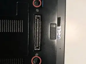 Переверните ноутбук и удалите два винта Phillips #0.