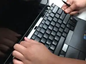 Вставьте острый конец лопатки под край клавиатуры и поднимите вверх, чтобы оторвать.