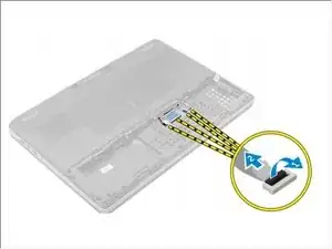 Поднимите язычок и отключите кабели клавиатуры от системной платы.