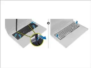 Подденьте отделку клавиатуры, начиная с нижней части, и пройдите вдоль верхнего края, чтобы удалить её с компьютера.