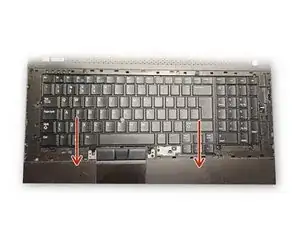 Отодвиньте четыре зажимы, расположенные по бокам клавиатуры (по два с каждой стороны)