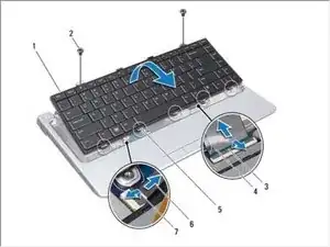 Аккуратно выдвиньте клавиатуру из компьютера и переверните её, как показано на следующем изображении.