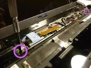 Выкрутите два винта в верхней части клавиатуры с помощью крестообразной отвёртки