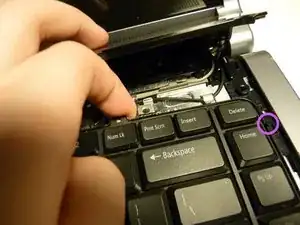 Теперь, когда винты удалены, приподнимите верхнюю часть клавиатуры