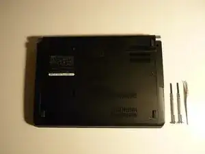 Сохраните винты в безопасном месте и переверните ноутбук лицевой стороной вверх
