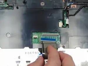 Поднимите черную вкладку на разъеме ZIF клавиатуры и отключите кабель.