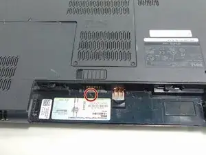 Переверните ноутбук так, чтобы его нижняя сторона была обращена вверх, а аккумулятор находился ближе к вам.