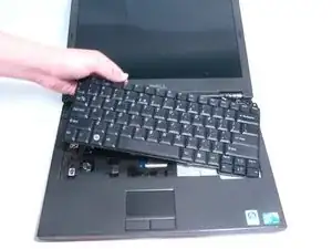 После удаления пластиковой крышки вам нужно найти два винта, удерживающих клавиатуру на месте. Левый винт находится прямо над клавишей "Escape", а правый — прямо над клавишей "Delete".