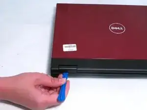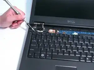 Используйте пластиковый инструмент для ослабления пластиковой крышки шарнира, расположенной над клавиатурой. Начинайте с одной стороны и переходите к другой.