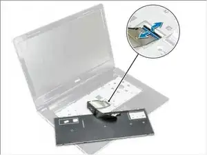 Освободите клавиатуру, поддев фиксирующие язычки клавиатуры с помощью пластиковой лопаточки [1].