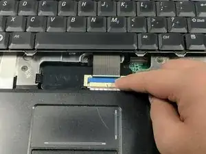 Поднимите синюю пластиковую крышку так, чтобы она находилась под углом 90 градусов к клавиатуре, чтобы отсоединить соединение с клавиатурой.