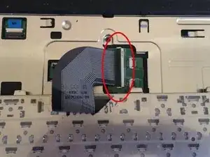 Очень аккуратно поднимите черную зажимную вкладку на шлейфе клавиатуры и извлеките шлейф.