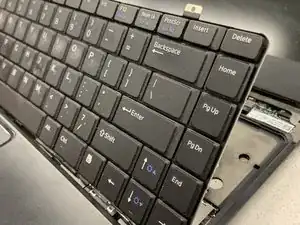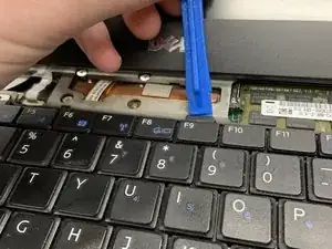 Используйте пластиковый инструмент, чтобы поддеть клавиатуру и вынуть её из ноутбука.