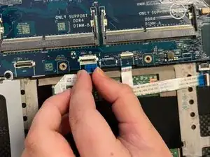 Отключите два кабеля материнской платы, расположенные справа на плате, используя инструмент для вскрытия.