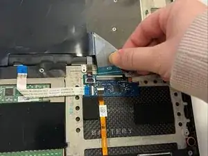 Отключите кабели клавиатуры, обозначенные как BL и KB, с помощью инструмента для открывания.