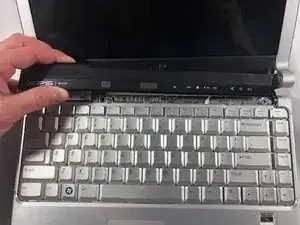 Осторожно отведите кабель клавиатуры от корпуса.