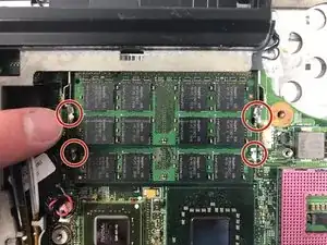 Отверните винт 3.0 мм Phillips #1, удерживающий беспроводную карту.