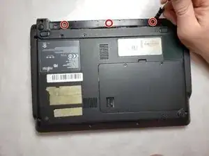 Удалите три винта PH0 длиной 4.6 мм в батарейном отсеке.