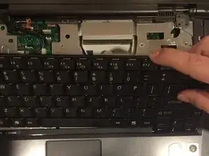 Существует ещё один ленточный кабель, соединяющий клавиатуру с материнской платой. Будьте осторожны, чтобы не порвать его.