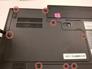 Удалите винты диаметром 2 мм на задней стороне ноутбука с помощью отвертки J0.