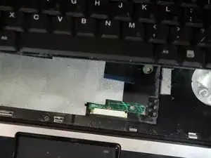 Удалите винт Phillips #0 длиной 4 мм, который фиксирует клавиатуру.