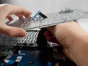 Оттяните пластину от основания, одновременно протягивая через неё кабель подключения клавиатуры.