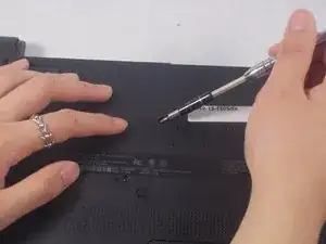 Выверните один винт длиной 7 мм в верхней центральной части ноутбука, используя крестовую отвёртку Phillips #0.
