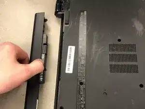 Извлеките аккумулятор из компьютера, сдвинув два зажима на дне компьютера к центру устройства.